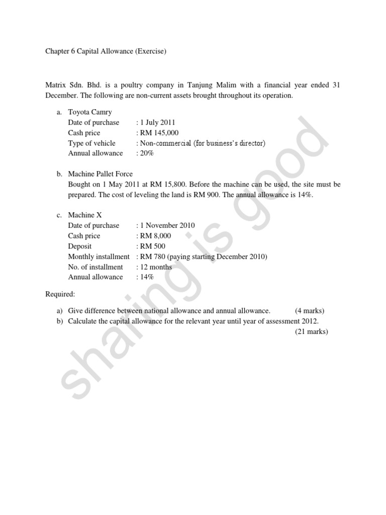 Some examples of assets that are normally used in business are motor vehicles, machines, office equipments and furniture. The canada revenue agency divides capital assets into a number of categories or classes. Learn ways to calculate capital allowance such as writing off the cost of an asset over one year, three years or over the prescribed working life of the asset. How to calculate withholding tax? Real property gains tax (rpgt) is a tax imposed on gains on the disposal of shares in real property companies rpgt was introduced in 1976 and reinstated in 2007.